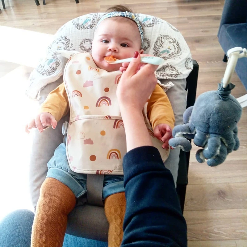O babador perfeito para a fase das descobertas. Feito em material impermeável, ele protege a roupinha do bebê durante as refeições e atividades, enquanto o bolso coletor evita sujeira e desperdício.